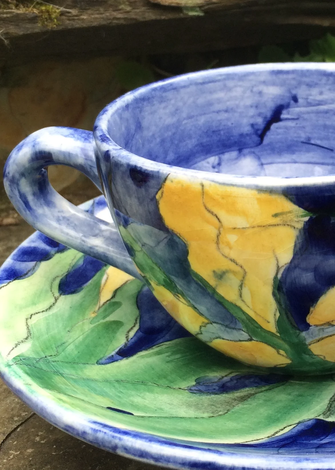 If you talk to pottery experts they will often refer to the clay as 'body'. It's an odd word for a material that can be as fine as it can be heavy, but as you touch it, and work with it, and it takes shape, it kind of makes sense. It's nothing and then it's something. It fills an empty space with something solid, hopefully beautiful and possibly useful. Before I became a potter I never really thought about ceramics and how they were made, other than finding certain shapes pleasing and others less so. I aways loved hand made pieces though and many years ago, even though I really couldn't afford it, I collected the work of ceramicist Idonia Van Der Bilj who had a shop in Columbia Road, East London. Her bright blue palette and yellow flag irises still excite me, and over the years they have become an important part of the fabric of our family life, but I was young when I bought them and I really didn't appreciate how much work was involved in each piece. Now my eyes are opened to the incredible skill and imagination potters have and I can totally see why some potters become so collectable - hand crafted pottery is such a creative form; telling stories and eliciting emotions. Each piece leaves something of the maker within it, an essence of them and for a moment, as you pick it up to hold it for the first time, their hand slides into yours.